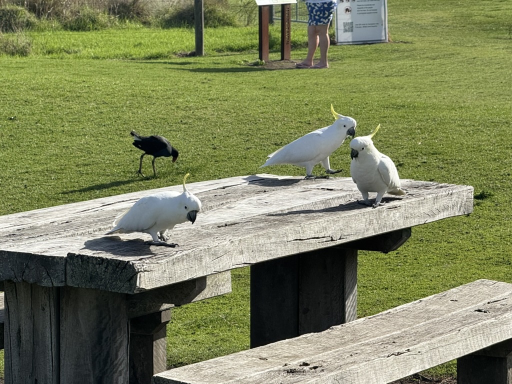 The next morning we were up by 7:00 AM heading to Moonlit Sanctuary by 9:30 am. It is a small but well managed park with all native species of Australia. We really enjoyed playing with Kangaroos, Wallabies and Pademelon here. Still hard to differentiate between all of them :)-. We also saw Koala, Tasmanian Devil, Dingo. Quokka ( happiest kangaroo), Echidna and Wombat. There were multiple species of birds as well, most noticeably Tawny Frogmouth, Pink Cockatoo and Brown Goshawk. We spent almost 2.5 hours here and also attended a session on Wombat and their peculiar poo.