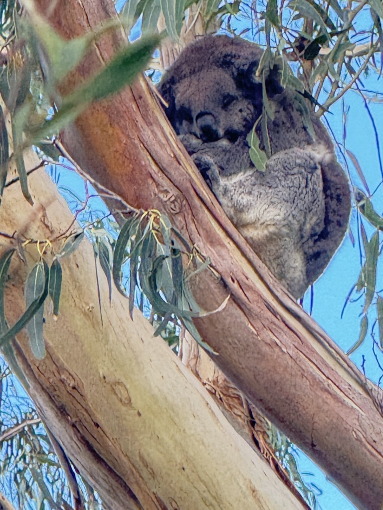 Close-up photograph of a Koala sleeping on a tree enroute to Twelve Apostles